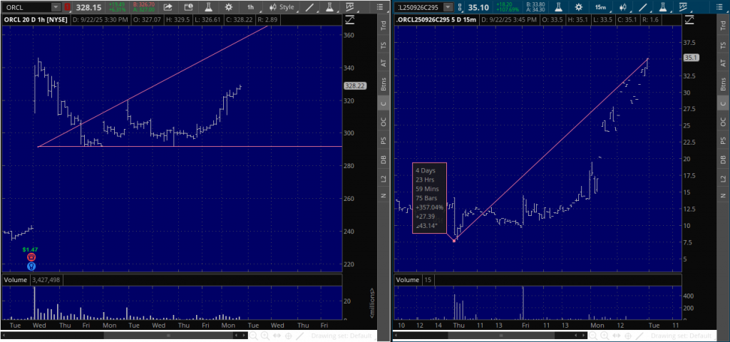 UPDATE: 9/22/25. Thank all you wealthy traders that trade “size” and heavy hitters that took advantage of my special offer, above, for buying stock and call options on ORCL when the price was at the 5 point. The Wolfe Wave critical tipping point.